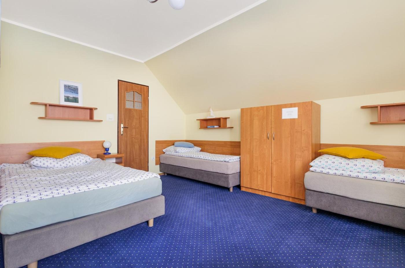 Pokój trzyosobowy. Jest to pokój trzyosobowy z prywatną łazienką oraz balkonem. Został on wyposażony w szafę oraz czajnik elektryczny. W tej opcji zakwaterowania do dyspozycji gości są 2 łóżka. Pokój Trzyosobowy - 3 osobowy. ;