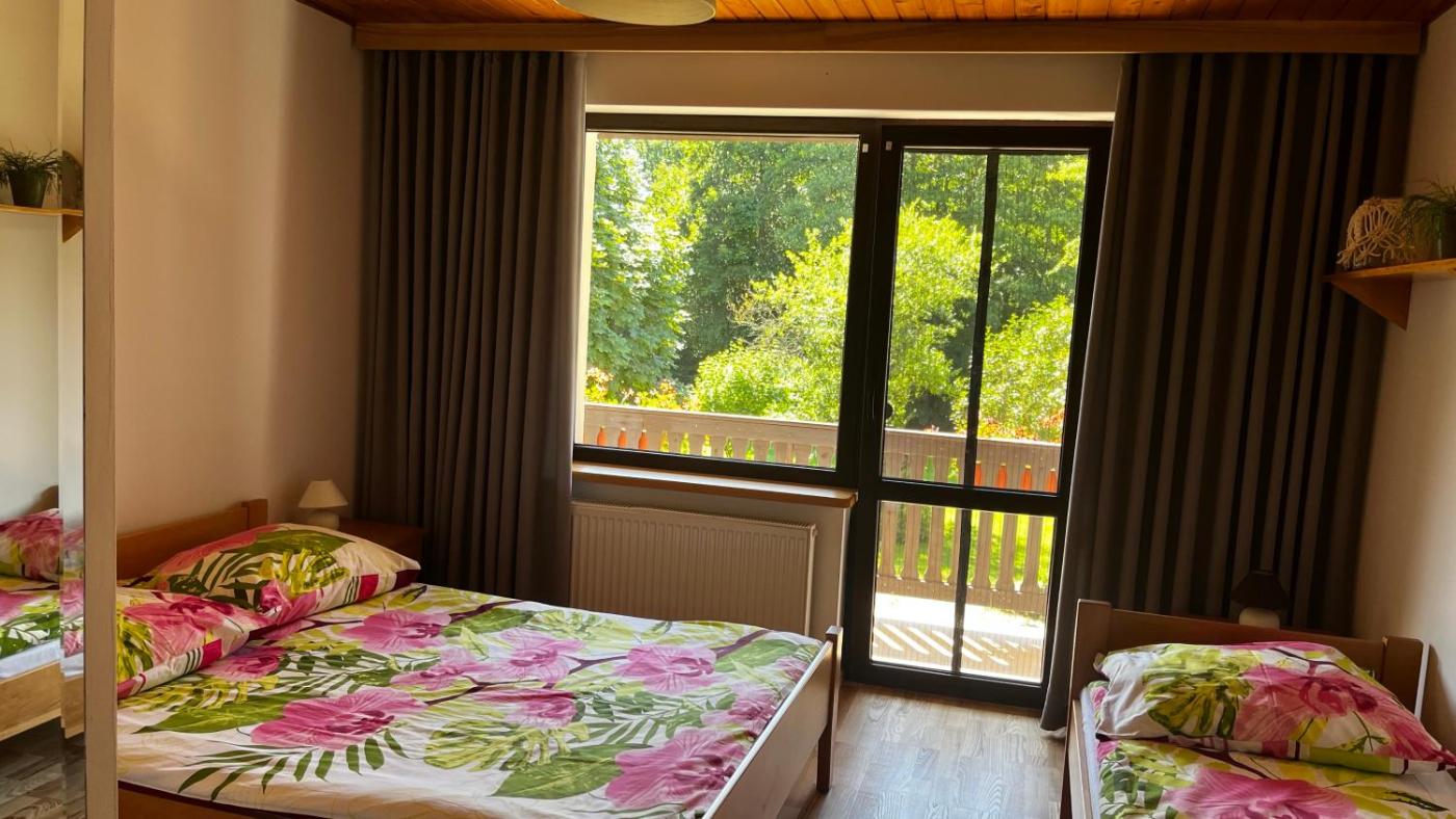 Apartament z 2 sypialniami. This spacious apartment comprises 1 living room, 2 separate bedrooms and 1 bathroom with a shower and a bidet. Guests will find a stovetop, a refrigerator, kitchenware and an electric kettle in the well-equipped kitchenette. The apartment also provides guests with a barbecue. The apartment features parquet floors, a seating area with a flat-screen TV, a dining area, a wardrobe as well as garden views. The unit offers 5 beds. Apartament - 7 osobowy. Powierzchnia pokoju ok.: 68 mkw.