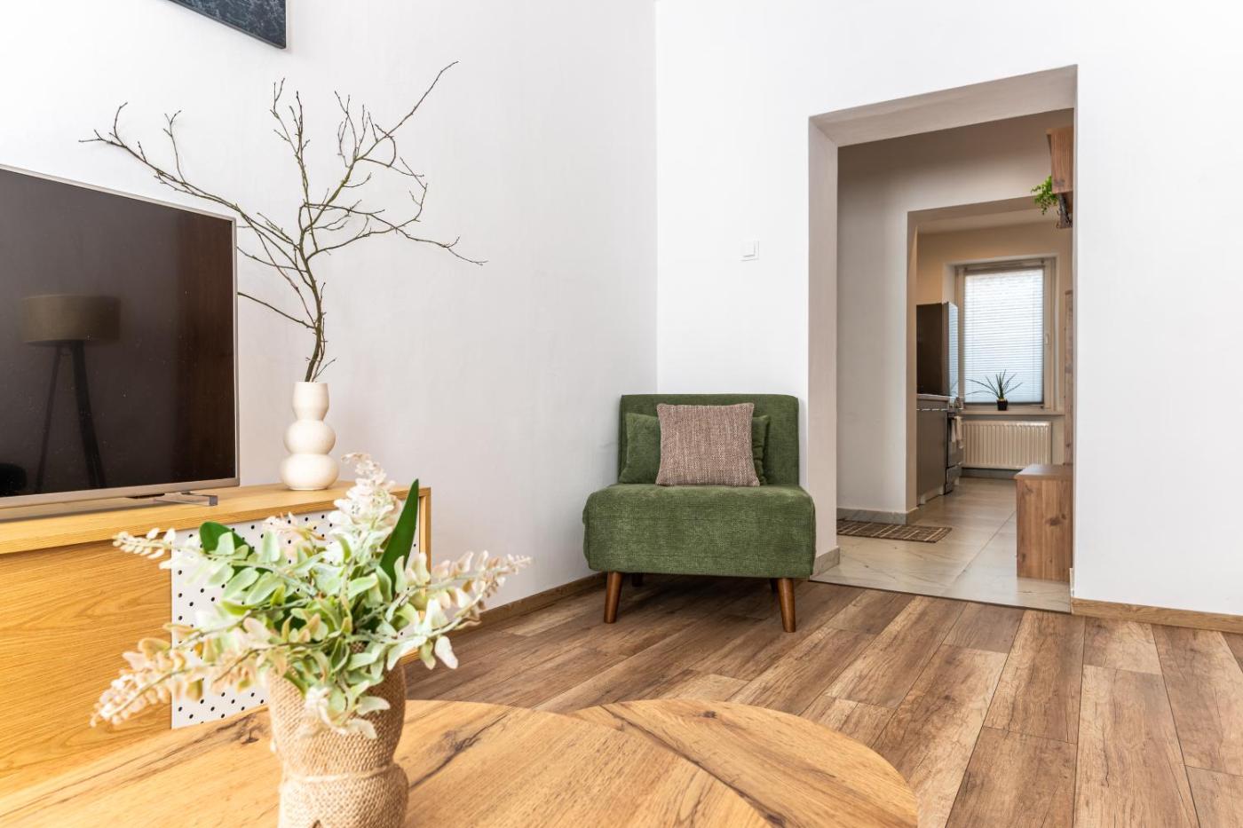 Apartament z 1 sypialnią. Featuring a private entrance, this apartment also consists of 1 bedroom, a seating area and 1 bathroom with a shower and a hairdryer. The fully equipped kitchen features a refrigerator, kitchenware, an oven and a toaster. The apartment provides a washing machine, a tea and coffee maker, a dining area, a flat-screen TV with streaming services, as well as city views. The unit offers 2 beds. Apartament - 3 osobowy. Powierzchnia pokoju ok.: 30 mkw.