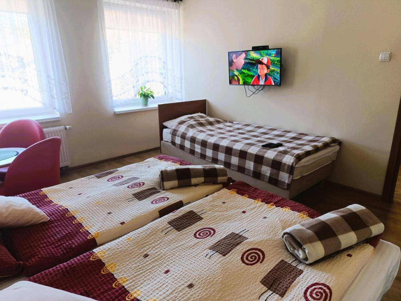 Apartament z 1 sypialnią. This apartment includes 1 living room, 1 separate bedroom and 1 bathroom with a shower. Guests can make meals in the kitchen that is fitted with a stovetop, a refrigerator and a tea and coffee maker. A seating area with a TV, a dining area and outdoor furniture are offered in this apartment. The unit has 3 beds. Apartament - 3 osobowy. Powierzchnia pokoju ok.: 40 mkw. ;