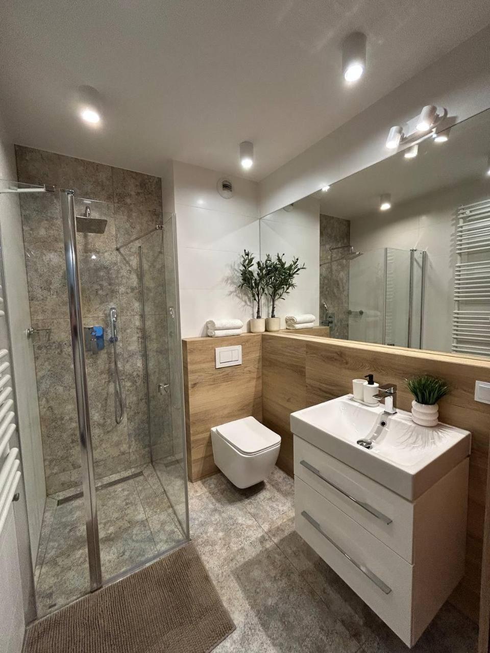 Apartament z 2 sypialniami. Boasting a private entrance, this apartment includes 1 living room, 2 separate bedrooms and 1 bathroom with a shower and a hairdryer. Meals can be prepared in the well-fitted kitchen, which has a stovetop, a refrigerator, a dishwasher and kitchenware. The apartment offers a washing machine, soundproof walls, a seating area, a flat-screen TV with streaming services, as well as ancourtyard view. The unit has 3 beds. Apartament - 6 osobowy. Powierzchnia pokoju ok.: 55 mkw.